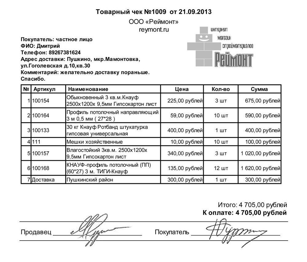 Чеки на стройматериалы и строительные услуги в Казани, Москве, Санкт-Петербурге и других городах России