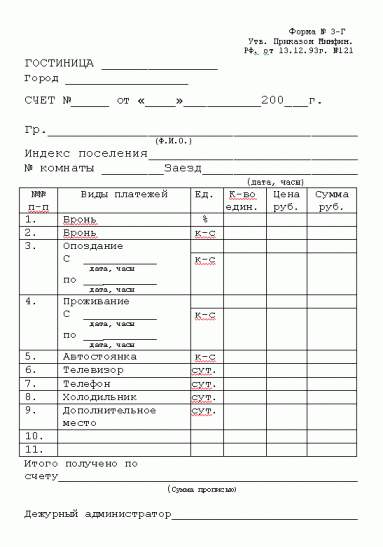 Гостиничный чек ФОРМЫ 3-Г в Казани, Москве, Санкт-Петербурге и других городах России